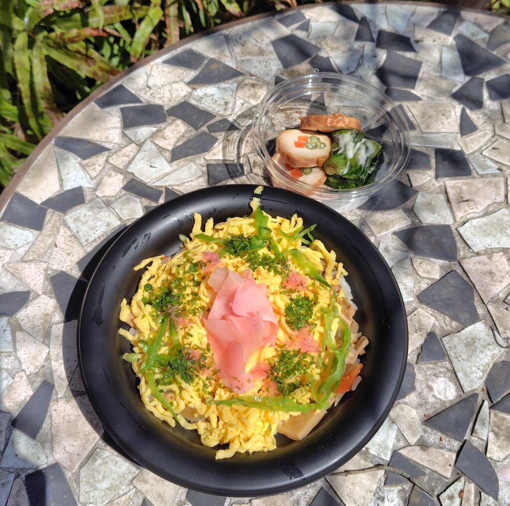 この日の目玉は、春の彩りを詰め込んだ「特製ちらし寿司」です。錦糸卵の黄色に桜色のガリ、瑞々しい絹さやを散らした華やかなお膳を前に、利用者さまからは「わあ、綺麗だね」「春が来たね」と、パッと明るい笑顔がこぼれました。
